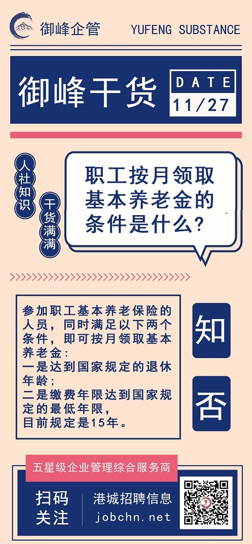御峰干货 | 职工按月领取基本养老金的条件是什么